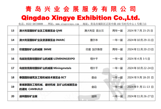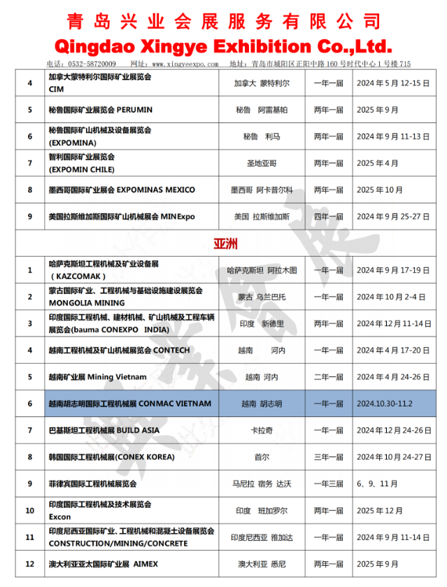 2024-2025年工程机械、矿业机械类境外展会计划
